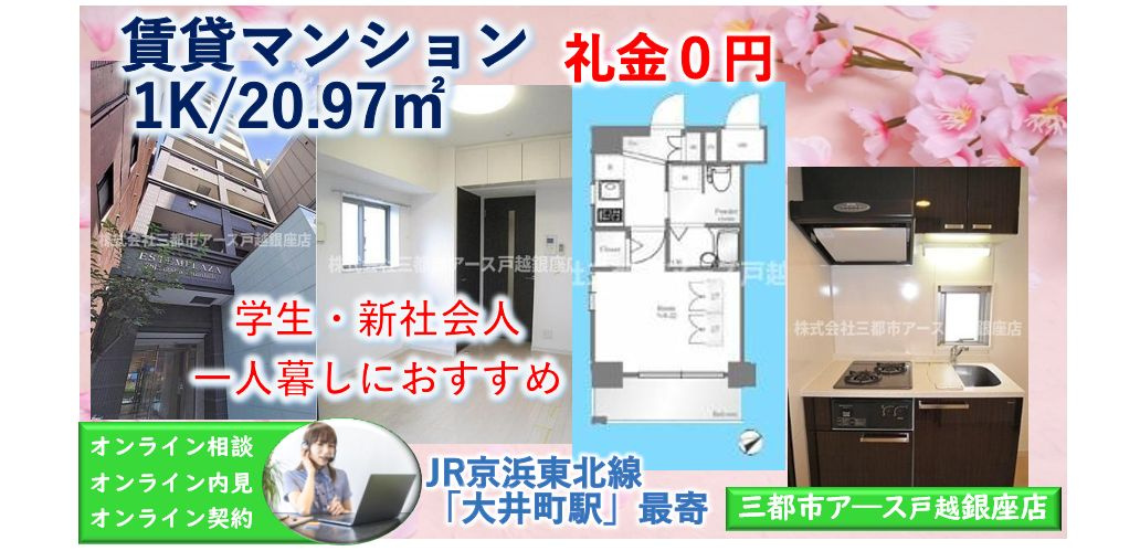 賃料:8.6万円 管理費:9,000円 敷金:1ヶ月 礼金:0ヶ月 間取り:1K 専有面積:20.97㎡ 築年月:2008年3月 (交通) JR京浜東北線 りんかい線 「大井町駅」徒歩5分 東急大井町線 「下神明駅」徒歩12分 京急本線 「立会川駅」徒歩15分 |