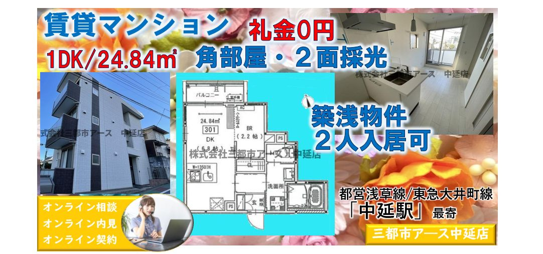 中延・戸越銀座・旗の台の賃貸・売買・管理は三都市アース(さんとしアース) > 三都市アース(さんとしアース)のブログ記事一覧 > 礼金0円★オートロックマンション1DK★2人入居OK