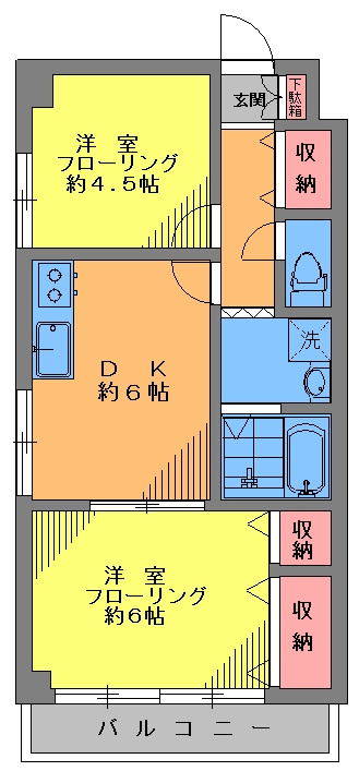 独立洗面台有り、振分タイプ、全室フローリングです。