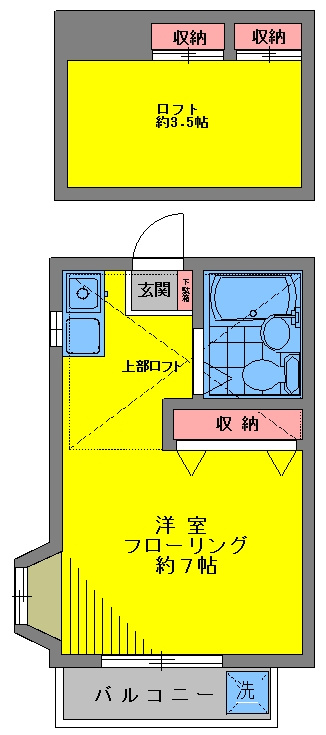 ★3帖のロフト付き、フローリング7帖と広い間取りです。
