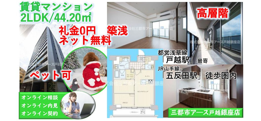 人気の戸越銀座にペット可!築浅賃貸マンション2LDK・高層階