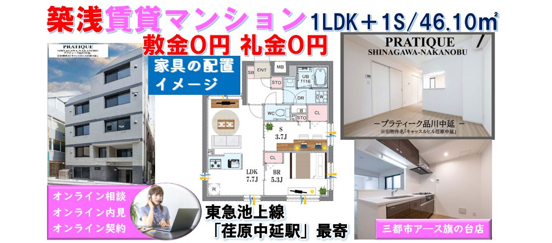 中延・戸越銀座・旗の台の賃貸・売買・管理は三都市アース(さんとしアース) > 三都市アース(さんとしアース)のブログ記事一覧 > 敷金0円・礼金0円★FR付★築浅の賃貸マンション1LDK+1S