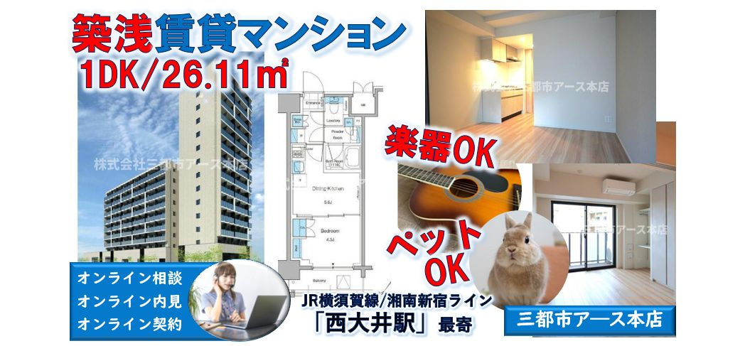 楽器・ペットOK!賃貸マンション1DK★築浅物件