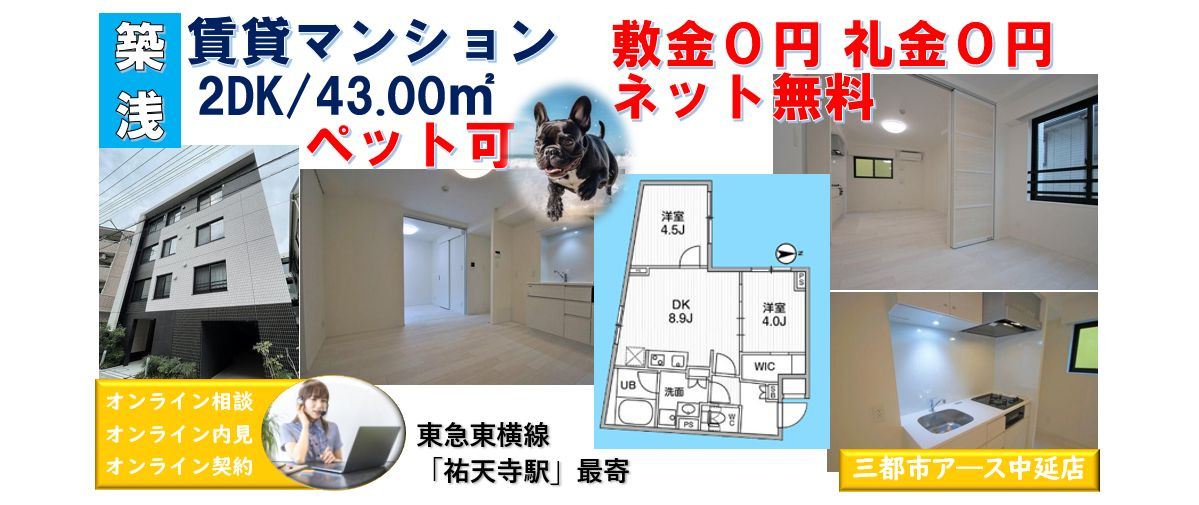 ペット可★敷金0円・礼金0円★人気の東横線沿線の賃貸マンション