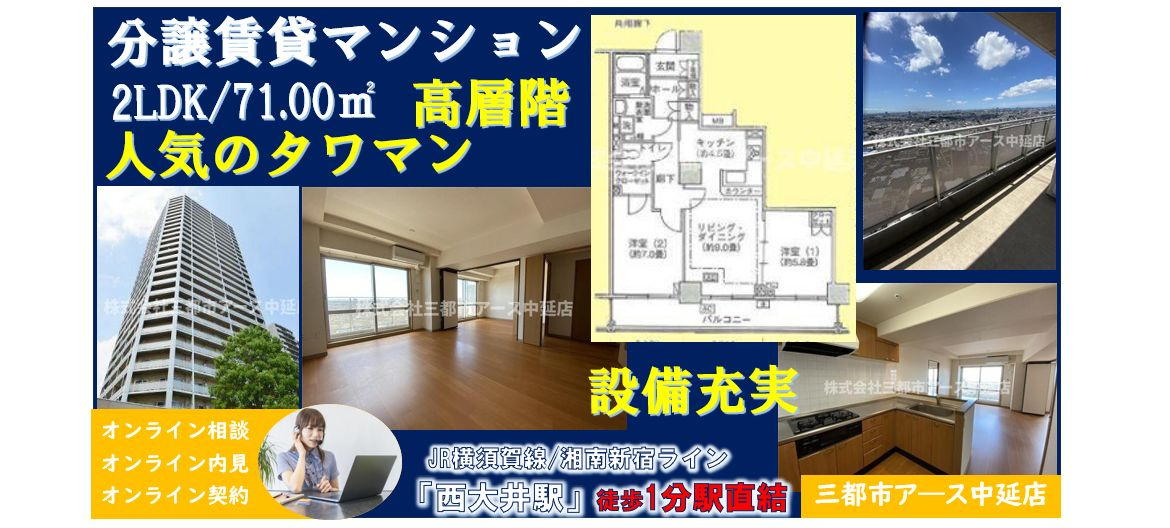 人気のタワマン20階のお部屋2LDKに空き予定!西大井駅直結
