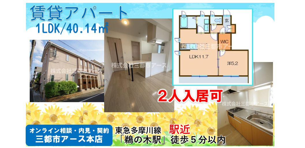 カップルや同棲・同居におすすめの賃貸アパート1LDK★鵜の木駅