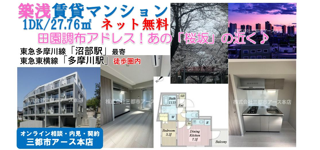あの「桜坂」近く!築浅の賃貸マンション1DK★大田区田園調布