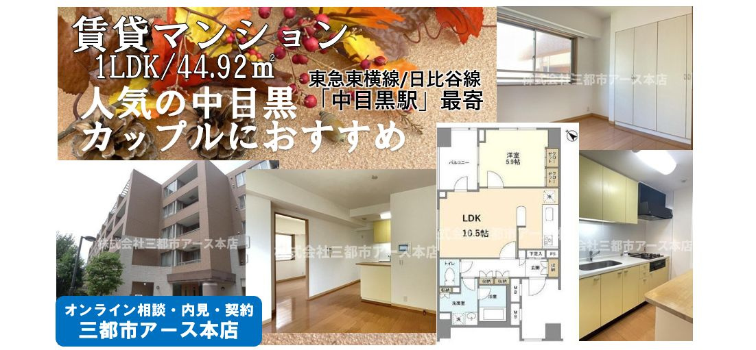 中延・戸越銀座・旗の台の賃貸・売買・管理は三都市アース(さんとしアース) > 三都市アース(さんとしアース)のブログ記事一覧 > 中目黒に住みたい!カップルにおすすめ1LDK・賃貸マンション