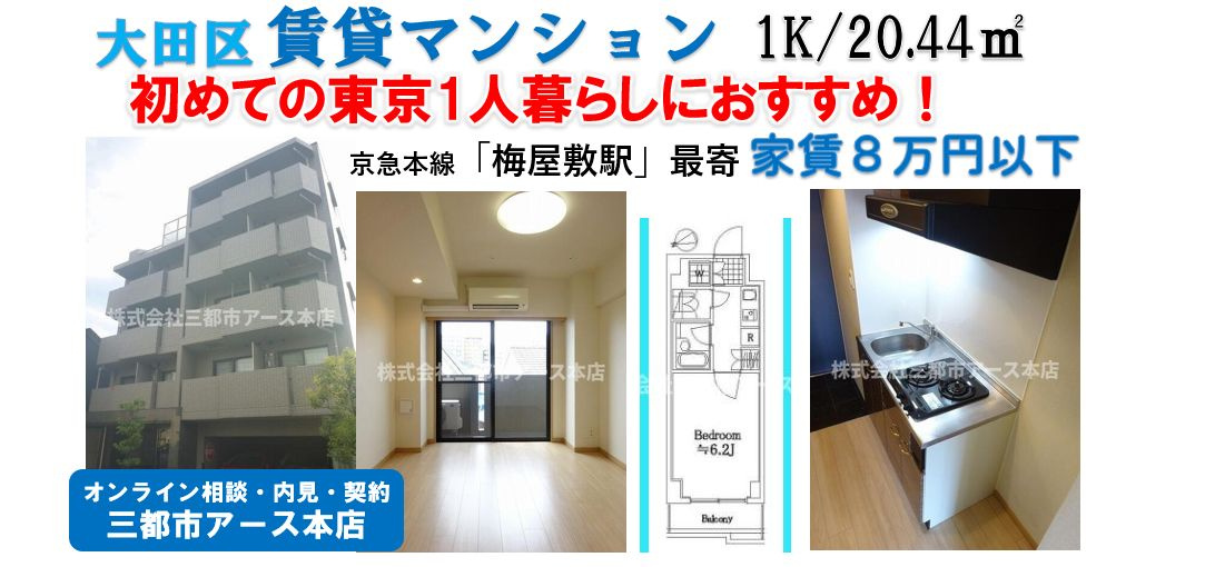 【大森東】家賃が8万円以下で1人暮らし!バス・トイレ別1K賃貸マンション♪