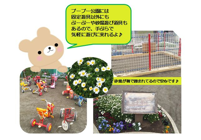 ぶーぶーが沢山置いてあり、固定遊具以外にも
